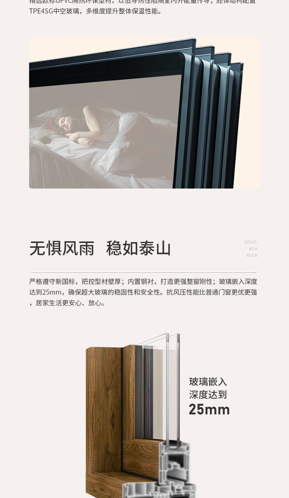 【產品系列】:UPVC 【產品型號】:U190 【產品性能】:水密性能5級、隔音性能5級、氣密性能5-7級、抗風壓性能7級、保溫性能10級