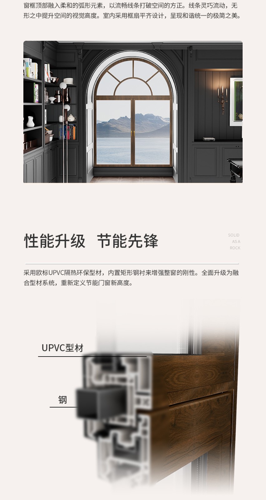 【產品系列】:UPVC 【產品型號】:U8Pro 【產品性能】:水密性能5級、隔音性能3級、氣密性能8級、抗風壓性能9級、保溫性能7-9級