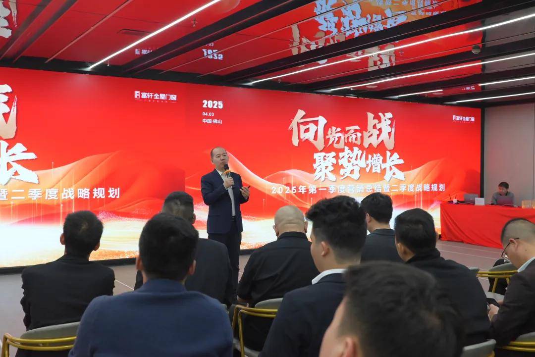 2025年4月3日,富軒全屋門窗2025年營銷中心春季大會在公司總部隆重召開,該會議對2025年第一季度工作進行復盤總結,為第二季度的各項工作做好戰略部署。富軒全屋門窗董事長李董,營銷總經理翁總攜一眾高管團隊和營銷中心全體精英共同出席本次大會。