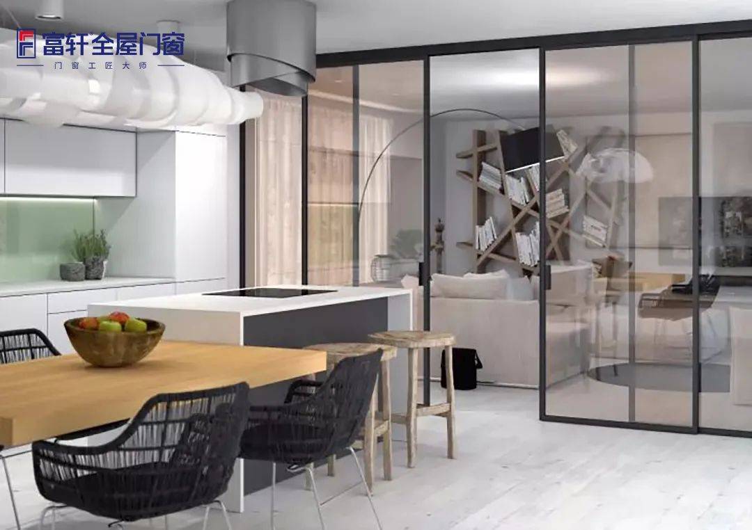 隔門不隔愛,富軒全屋門窗極致藝術系列吊軌門,以極簡的設計,增強通透性,開闊視野,匠心工藝,無懼油煙,多種門框顏色可選,適合現代極簡、日式、歐式等各種裝修風格。