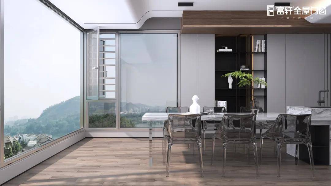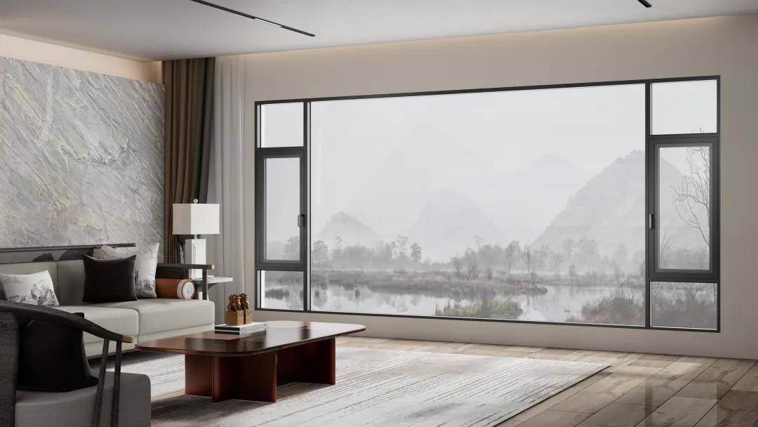 美觀通透:窗紗一體系統窗采用大面積玻璃設計,全景視野無遮擋,巨幅采光門窗,光線更加明亮,足不出戶也能直面感受大自然的美。