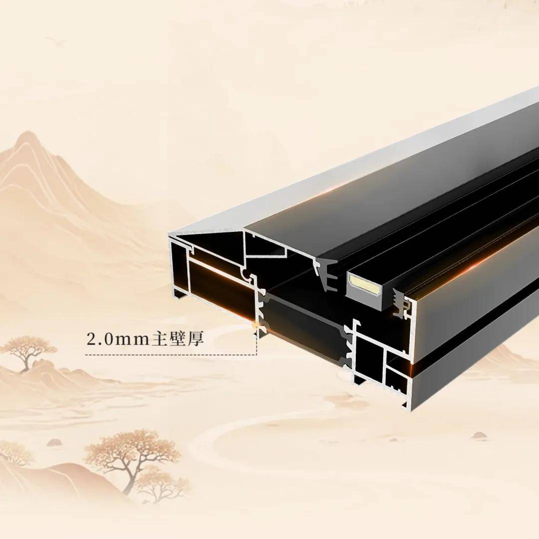 型材精選6063-T6高性能鋁材,鳳凰Ⅱ壁厚超新國標2.0mm,玄武Ⅱ通用壁厚達新國標1.8mm,型材表面特別搭配阿克蘇進口粉末噴涂,無懼暴雨臺風,久用不褪色,尤其適合沿海地區和高層住戶。