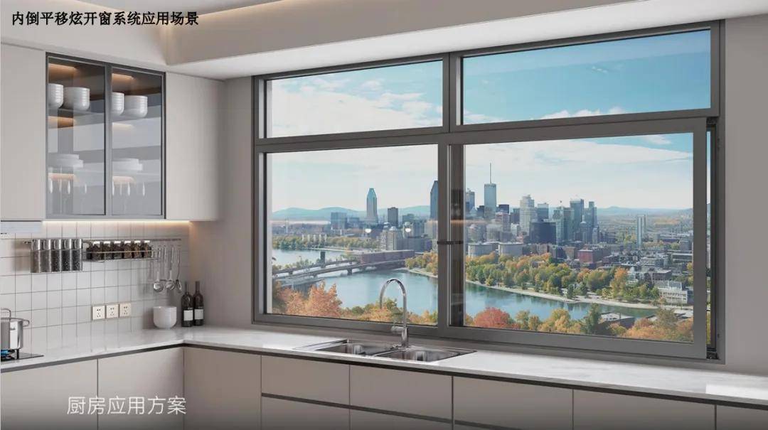 在中國人的傳統文化中,“灶”是家的靈魂,現在被叫做“廚房”,承載四季煙火氣,每一天的健康美味都在這里誕生,幸福也隨著每一次入口的美食填滿心底。由于國內大多飲食需要使用炒、煎、焗、煲……等油煙較大的烹飪方式,因此,廚房的裝修一般更注重易清潔、通風好、采光足等需求,而選擇門窗除了需要考慮以上問題外,還要考慮門窗是否開啟輕便、不占據廚房空間等問題。