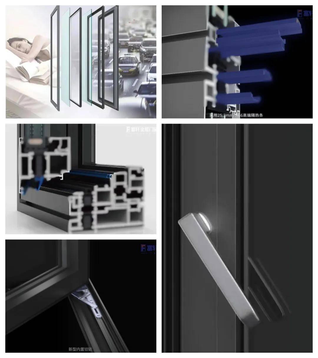 富軒全屋門窗采用航空級原生鋁材,強度高、抗腐蝕,保障了門窗的穩固耐用,型材內部采用垂直等溫線設計,更有效減少熱量傳導。