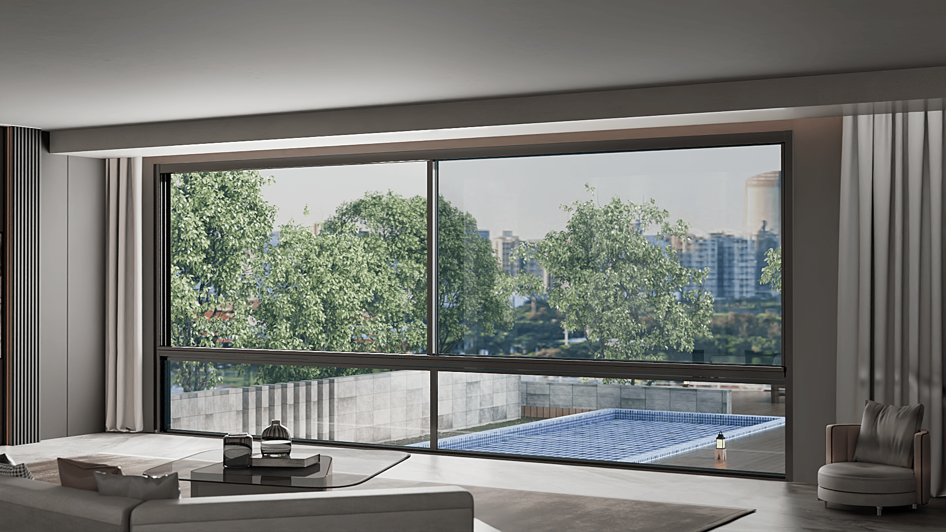 陽臺是一個與自然連接,提升生活品質的重要區域,富隱MTS15全景斷橋推拉窗融合多項密封技術,打破推拉窗密封差的固有印象,下軌道采用下沉式隱藏排水設計,既能防止漏水,也能避免風吹排水口產生的”口哨聲“;同時下軌道配置10道毛條設計,全方位無死角提升密封效果。面對暴雨天氣,型材上下軌添加鋼板,顯著提升了門窗的抗風壓性能、穩固性和使用壽命;整窗框扇采用嵌入式設計,34mm極窄邊框,讓室內顯得更開闊、通透,減少寬大窗框帶來的沉悶感。